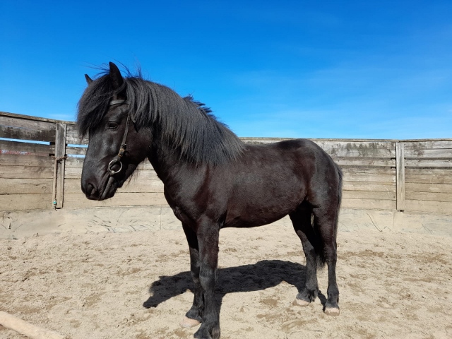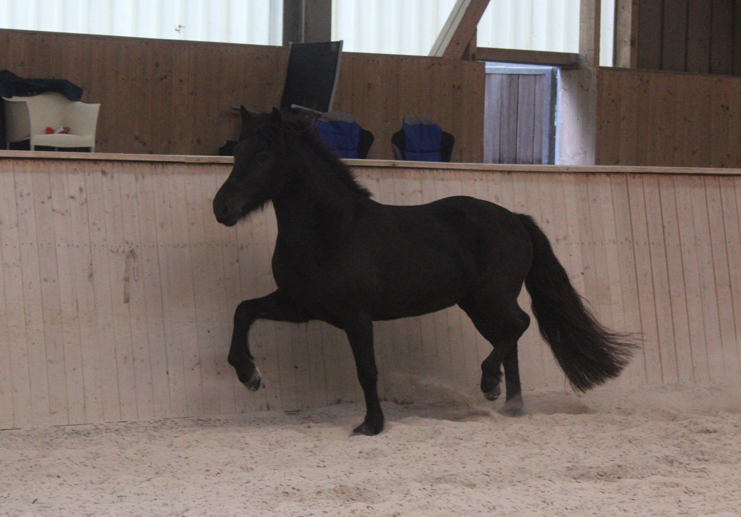 Der Rappe Naddur erhielt den Richterspruch:"Mittelgut aufgerichteter Hengst mit guter Genickhaltung, klarer Gangtrennung und Tölt in den Übergängen bei fleißigem Temperament." (Abstammung: V: Alfari frá Votmúla 1, M: Gunnvör vom Berghof)