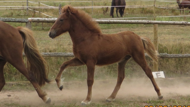 Richterspruch: "Ausdrucksvolles, lauffreudiges Hengstfohlen mit sehr guter Balance und gleichmäßiger Gangqualität bei viel lockerem Naturtölt."